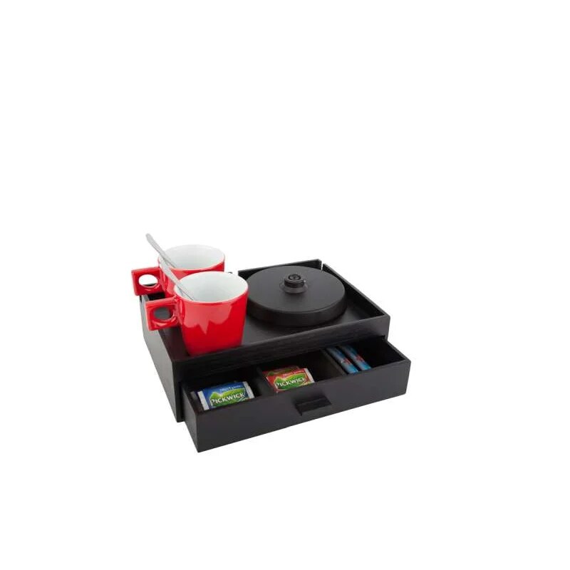 Willkommenstablett SMART Dunkelbraun und 2 rote Porzellantassen