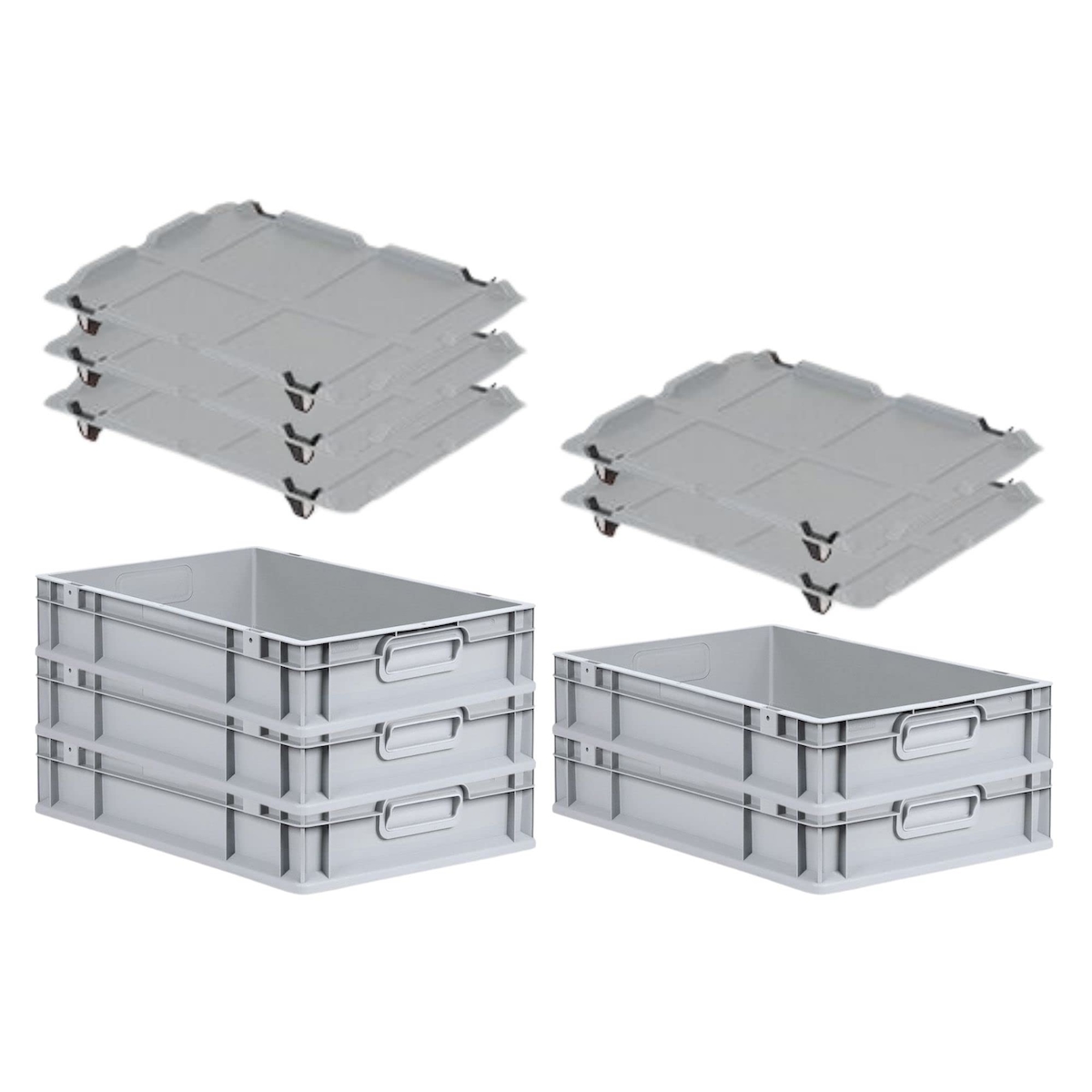 PROREGAL SparSet 5x Eurobox NextGen Economy mit Auflagedeckel & 4x Verschlüsse Schwarz, Griffe zu, HxBxT 12x40x60cm, 23L, Eurobehälter, Box