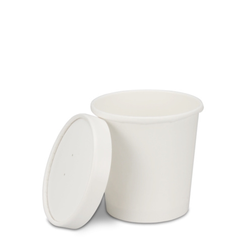 Pack4Food24 250 Thermobecher Suppenbecher Eisbecher Papier weiß 16oz/450ml mit Deckel