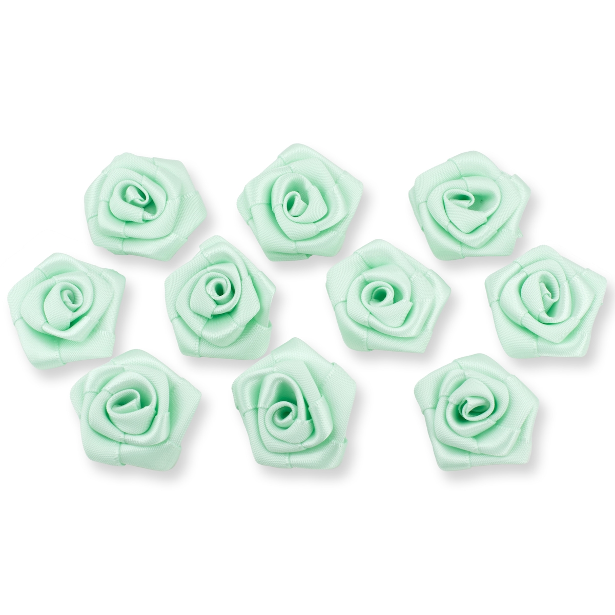 Creativery Satinrosen 3cm 10 Stück Stoffblumen zum Basteln Dekorieren Hochzeit Geschenkverpackung Blütendeko Tischdeko Handarbeit Stoffrosen Deko Blumen Mint