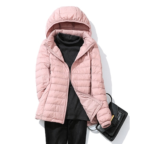 Per donna Giacca Piumino Caldo Confortevole Cerniera Tasca Moda All'aperto Semplice Streetwear Casual Quotidiano Weekend Cerniera Regolare Con Cappuccio Vestibilità regolare Manica Lunga Capispalla