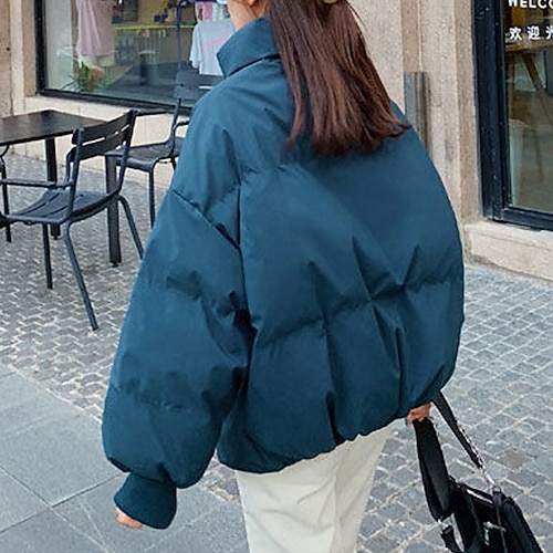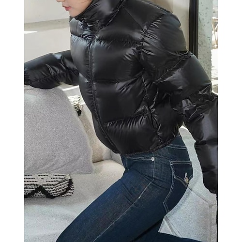 Per donna Cappotto Invernale Giacca Piumino Caldo Confortevole Cerniera Tasca Casual Semplice Abbigliamento quotidiano Uscire Weekend Corto Collo alla coreana Vestibilità regolare Manica Lunga