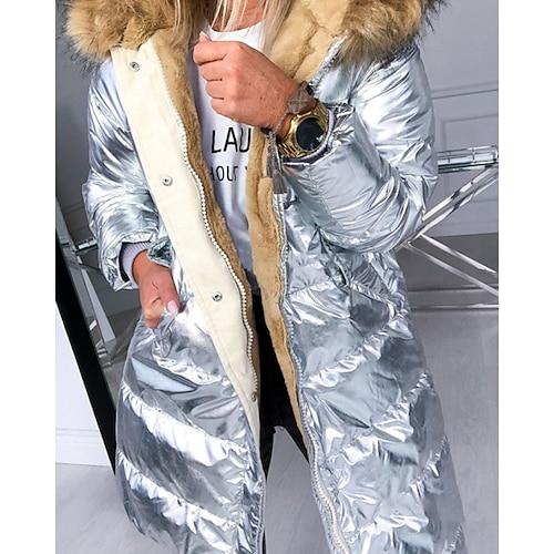 Per donna Cappotto Invernale Giacca Piumino Cappotto in Pelliccia Sintetica Caldo Confortevole Cerniera Tasca Collo in Pelliccia Casual Semplice Vacanza Abbigliamento quotidiano Uscire Weekend Lungo