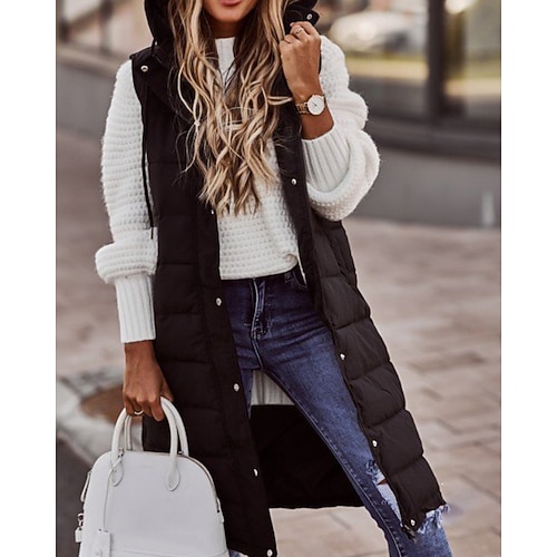 Per donna Cappotto Invernale Giacca Piumino Gilet Caldo Confortevole Tasca Bottoni Casual Semplice All'aperto Vacanza Streetwear Casuale Regolare Lungo Con Cappuccio Vestibilità regolare Senza Maniche