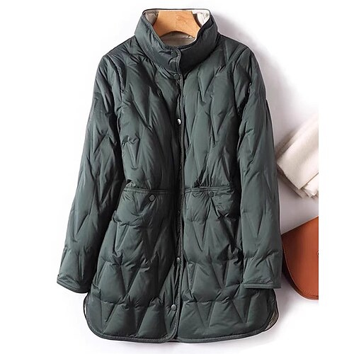 Per donna Giacca Piumino Giacca imbottita Giacca trapuntata Caldo Confortevole Tasca Bottoni Moda Casual Semplice Streetwear Casuale Abbigliamento quotidiano Uscire Monopetto Lungo Collo alla coreana