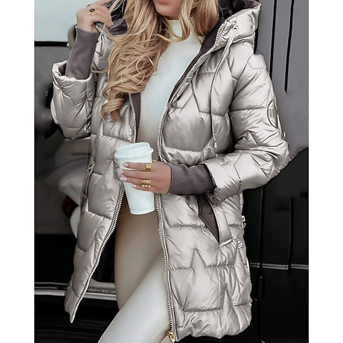 Per donna Cappotto Invernale Giacca Piumino Giacca con Cappuccio Caldo Confortevole Cerniera Tasca Casual Semplice Vacanza Abbigliamento quotidiano Uscire Weekend Lungo Con Cappuccio Vestibilit