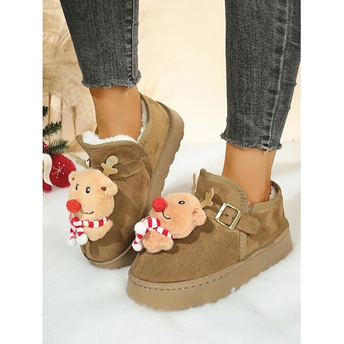 stivali da neve natalizi da donna in cammello con motivo a renne e sciarpa - stivaletti foderati in pile, morbidi e festosi, ideali per Natale e le riunioni di famiglia