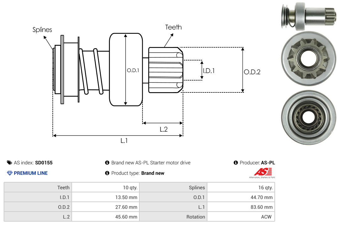 AS-PL Freilaufgetriebe, Starter SD0155 Universal für VW 02T911335A 020911335G