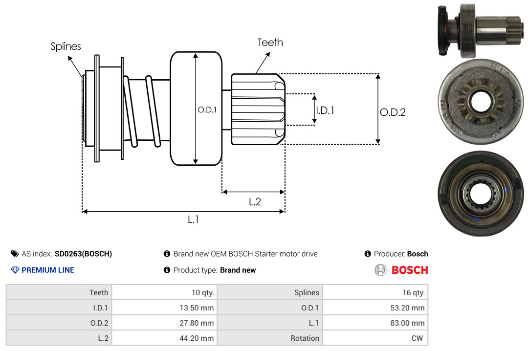 AS-PL Freilaufgetriebe, Starter SD0263(BOSCH) Universal für VW 02M911335H