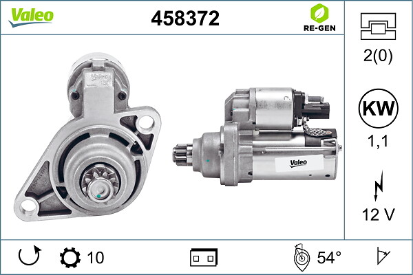 VALEO Starter REMANUFACTURED PREMIUM 458372 12V für SKODA VW (SVW) SEAT (FAW) AUDI 0AM911023BX AM911023BX L0AM911023B