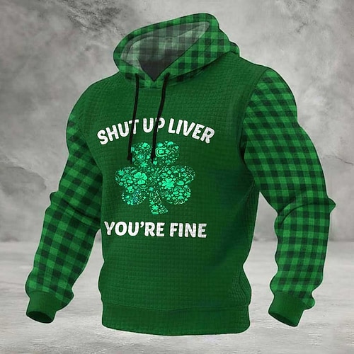 Felpa con cappuccio per il giorno di San Patrizio, Slainte, stile irlandese, da uomo, in maglia a nido d'ape, con maniche a quadri, grafica trifoglio, verde, abbigliamento, abbigliamento S M L XL XXL