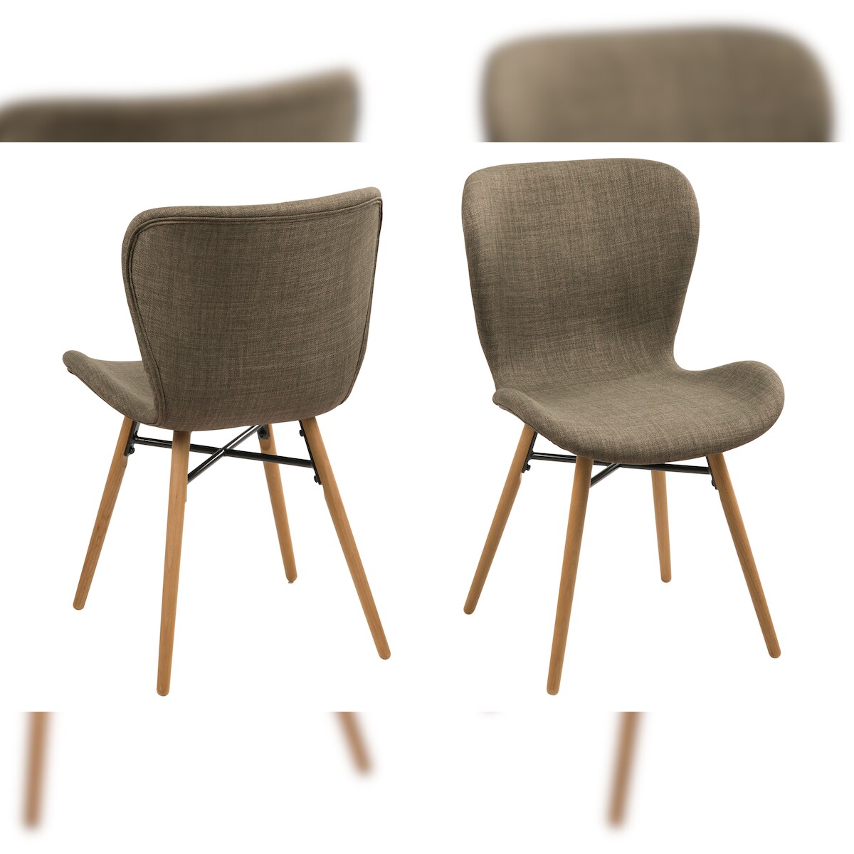 Bali Esszimmerstuhl Stoff khaki farben und massiven Beinen aus Eiche. 2er Set