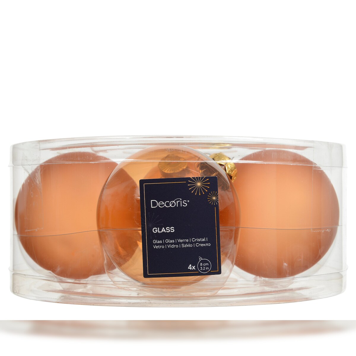 4 Weihnachtskugeln Glas 8cm matt & glänzend Christbaumkugeln Weihnachtsbaumkugeln Groß Christbaumschmuck Weihnachtsbaumschmuck Brandy transparent