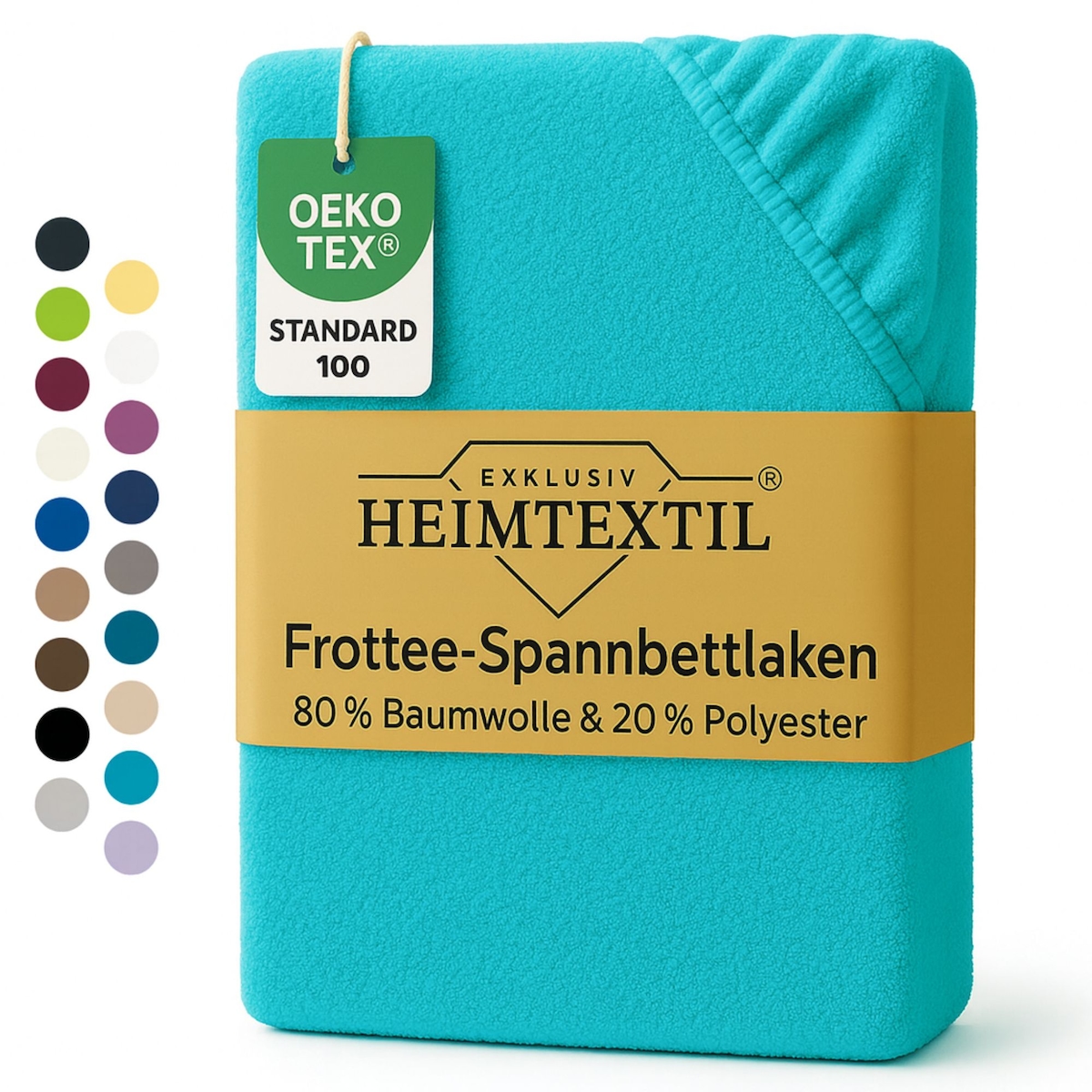 EXKLUSIV HEIMTEXTIL Frottee Spannbettlaken 90 - 100 x 200 cm Türkis 80% Baumwolle 20% Polyester Öko - Tex Zertifiziert Bed-Sheet Bettlaken Spannbettt