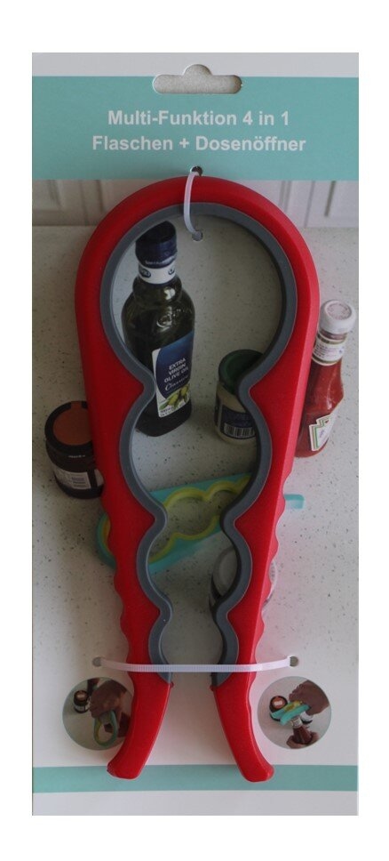 Flaschen + Dosenöffner Multifunktion 4 in 1 Rot