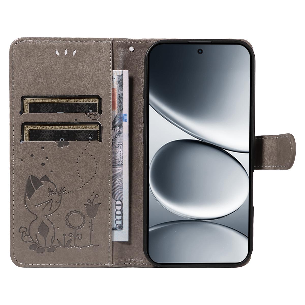 For Xiaomi Redmi Note 15 Pro 5G (Global) Lommebokdeksel i lær med katt- og bimønster, telefondeksel med stativ