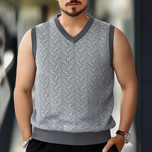 Per uomo Gilet Maglione elegante Maglione Maglione a maglia A Coste Maglia Top Regolari Jacquard Lavorato a maglia Blocco di colori Scollo a V Moda Casual Vacanza Abbigliamento quotidiano