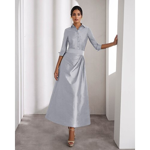 Abiti da cocktail A-Line per la madre della sposa elegante invitata a matrimonio lunghezza alla caviglia maniche lunghe colletto a camicia taffetà con spacco