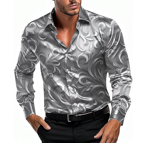 Per uomo Camicia Camicia in raso Camicia con bottoni Formale Rosso Blu Grigio scuro Grigio Manica lunga Collo ripiegabile Estate Primavera Abbigliamento Bottoni