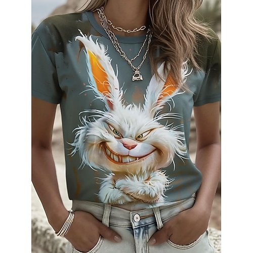 Ragazzi 3D Coniglio Maglietta Manica Corta Estate Primavera Moda Essenziale Bambini 4-12 Anni Girocollo All'aperto Casuale Quotidiano Vestibilità regolare