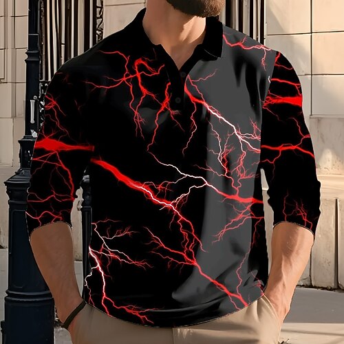 Per uomo Fulmini Polo Manica Lunga Magliette polo Bavero Casual All'aperto Streetwear Athleisure Abbigliamento quotidiano Stampa 3D Bottoni Primavera Autunno Inverno Giallo Rosso Verde
