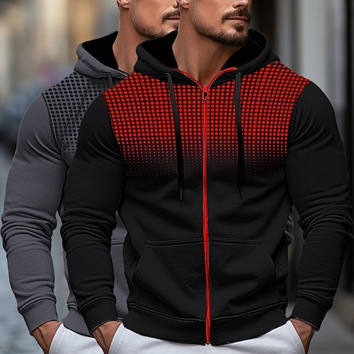 Per uomo Felpa con cappuccio Felpa con cappuccio in pile Aalbicocca Rosso bordeaux Nero Bianco Rosso Con Cappuccio Blocco di colori Con zip Blocco di colore Zip a un quarto Sport Outdoor Quotidiano