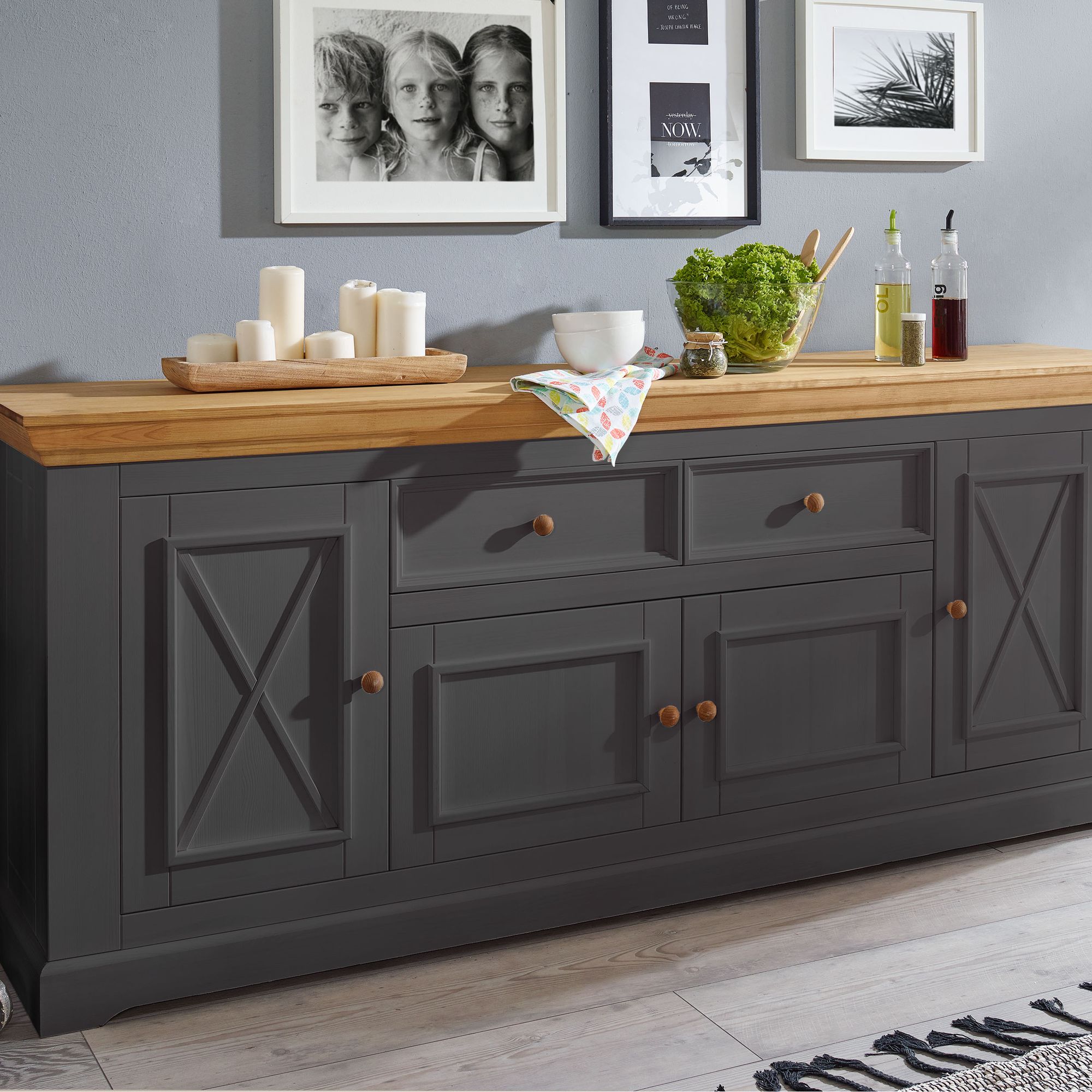 3S Frankenmöbel »Country« Massivholz Sideboard l grau WZ-0133 / B 209 x H 88 x T 42 cm