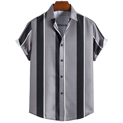 Per uomo Camicia Camicia Estiva Camicia casual Camicia da Spiaggia Camicia con Bottoni Blu Oro Verde Grigio scuro Grigio Manica Corta A righe Bavero Vacanza Camicia hawaiana Abbigliamento Poliestere