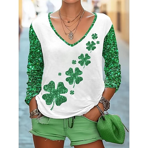Tunic di St. Patrick da donna trifoglio elegante manica corta colletto a V tops regolari quotidiano uscita stampa verde estate primavera