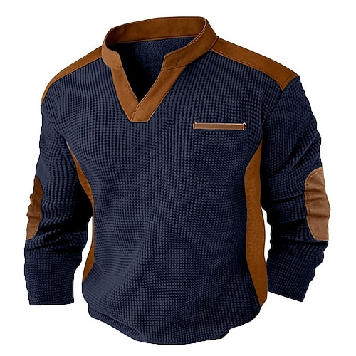 Per uomo Maglietta Waffle Camicie da uomo con toppe sui gomiti Manica Lunga Scollo a V Primavera Autunno Tutte le stagioni Tinta unica Testurizzato Moda Essenziale Casual Tasche Casuale Streetwear