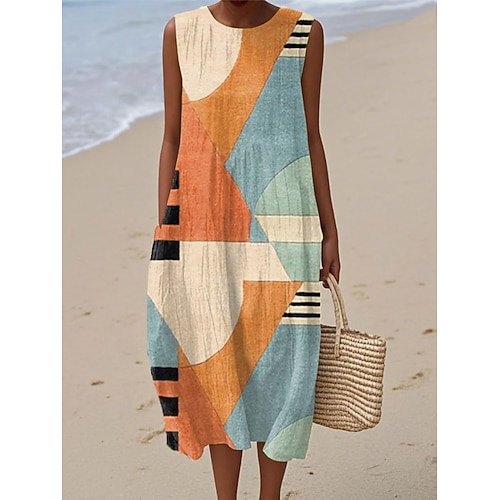 Per donna Abito Midi Vestito Estivo Abito a Tubino Abito a trapezio Vacanza Casual Boho Uscire Spiaggia Vestibilità comoda Grafico Geometrico Senza Maniche Girocollo Giallo Grigio scuro Arancione