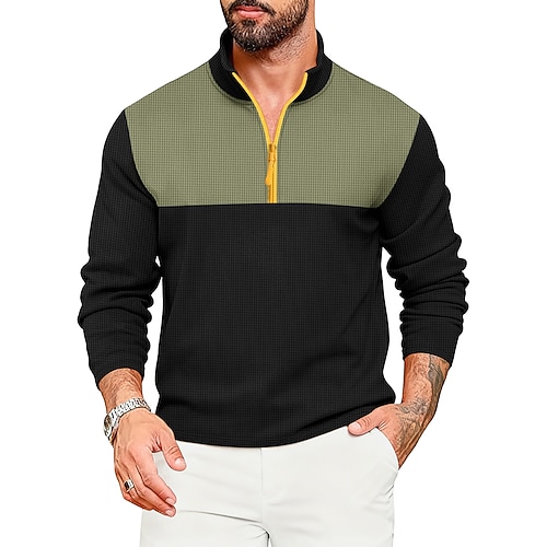 Per uomo Camicia a nido d'ape Maglietta Maglia Mezza Zip Camicia a Maniche Lunghe Manica Lunga Zip a un quarto Primavera Autunno Tutte le stagioni Blocco di colori Moda Designer Essenziale Patchwork