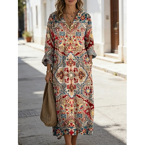 Per donna Abito Midi Abito a Tubino Casual Quotidiano Uscire Vestibilità comoda Floreale Grafico Tropicale Manica Lunga Scollo a V Blu Rosa Rosso Estate Primavera