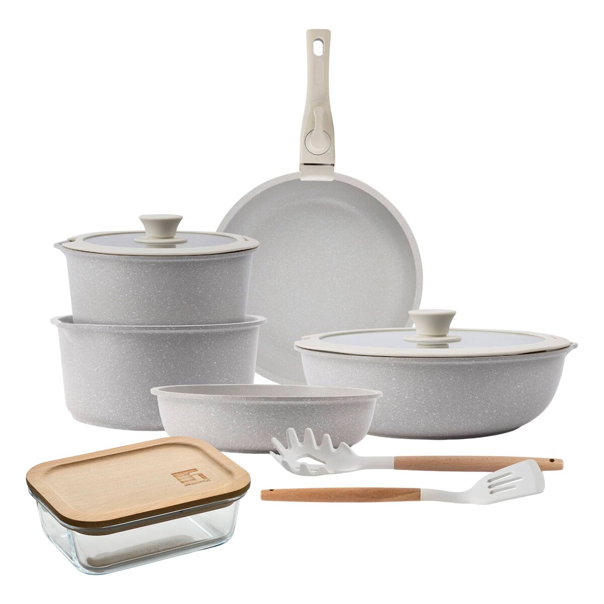 Bergner – 10-teiliges Kochgeschirr-Set aus Aluminiumguss mit Antihaftbeschichtung, abnehmbarem Griff und 650-ml-Luftdichtbehälter aus Borosilikatglas