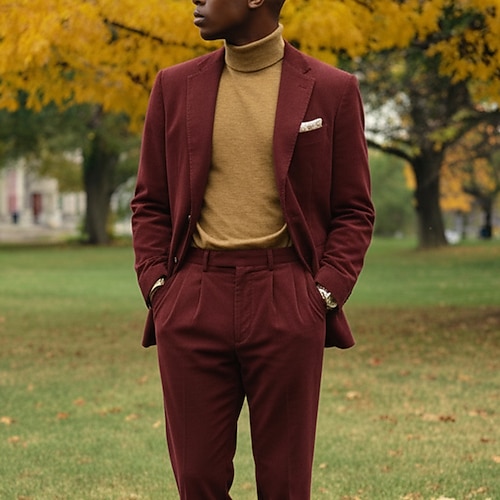 Uomo Affari Casuale Completi in Tweed Bavero classico Nero Borgogna Quotidiano Casual Tinta unita Vestibilità su misura 2 pezzi Monopetto Due Bottoni