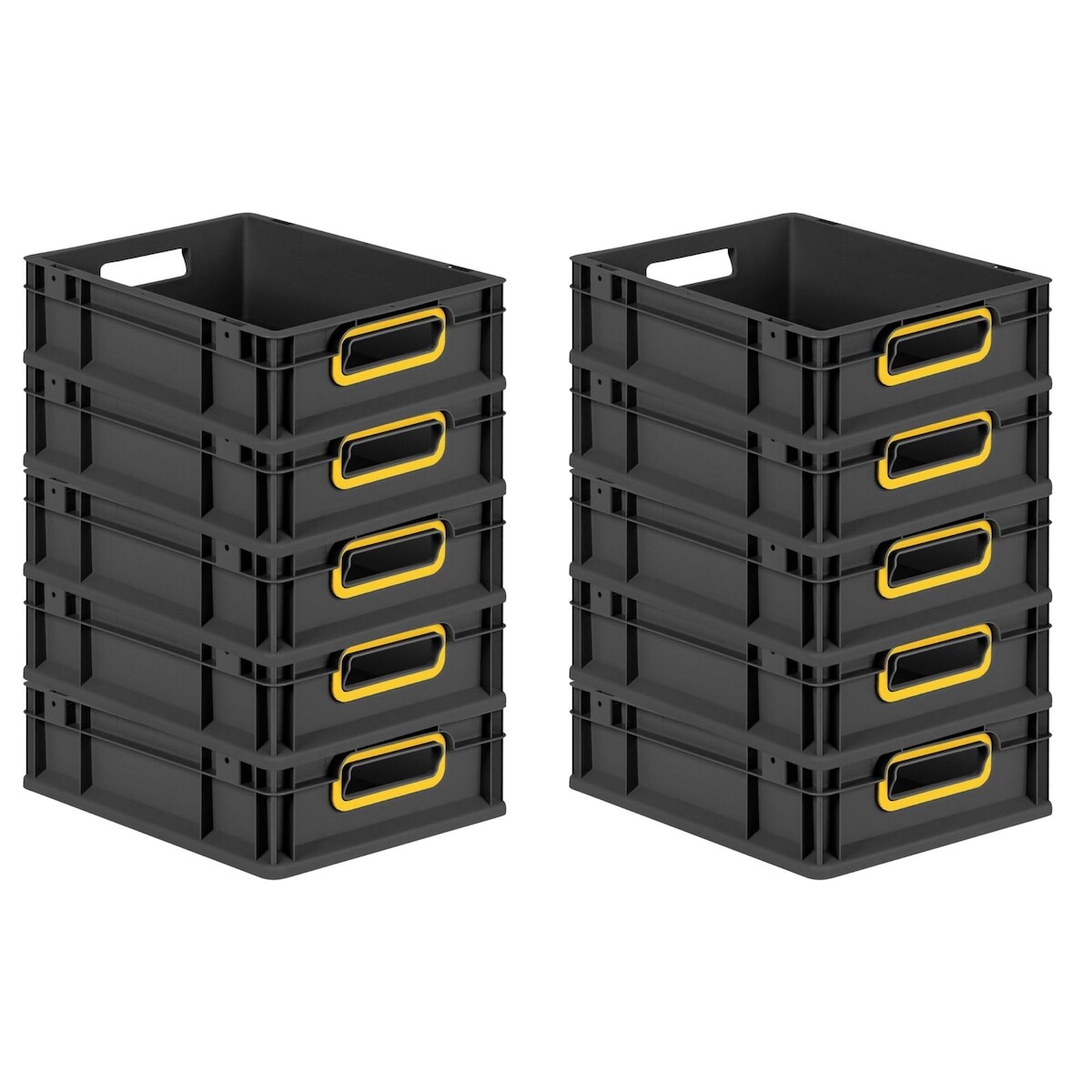 PROREGAL SparSet 10x Eurobox NextGen Color, HxBxT 12x30x40cm, 11 Liter, Griffe gelb offen, Schwarz, Eurobehälter, Transportbehälter