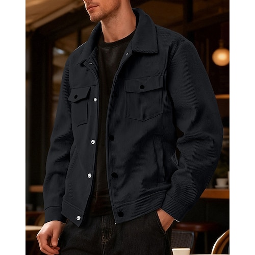 Per uomo Giacca Leggera Giacca in Velluto a Coste Giacca Casual Giacca da Lavoro All'aperto Casuale Tasca Autunno Inverno Blocco di colori Streetwear Sport e Outdoor Collo ripiegato Regolare