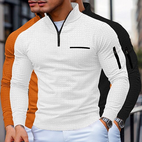 Per uomo Magliette Polo a Nido d'Ape Pullover Sport Outdoor Casuale Collo Alto Zip a un quarto Manica Lunga Moda Confortevole Blocco di colori Testurizzato 3 pezzi Primavera Autunno