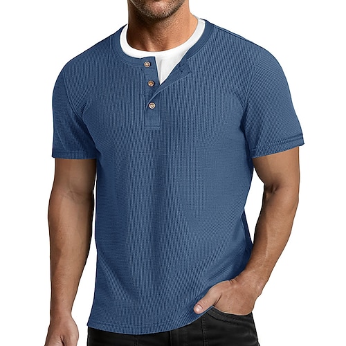 Per uomo Maglia Henley a nido d'ape Maglietta Maglietta in misto cotone Manica Corta Blocco di colori Semplice Moda Designer Casual Blocco di colore Bottoni Finto due pezzi Girocollo Henley Casuale