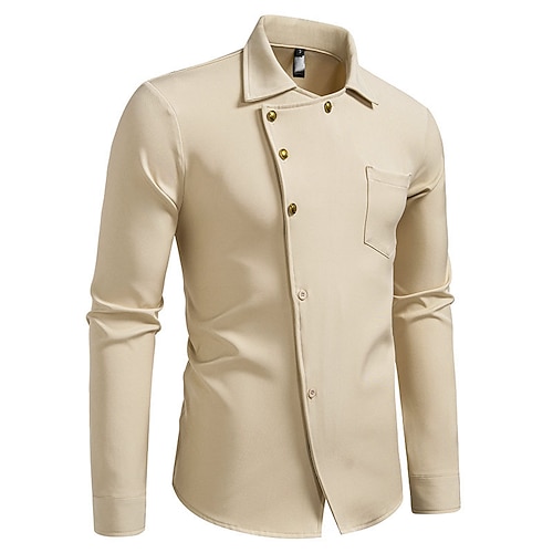 Per uomo Camicia Camicia casual Camicia con Bottoni Camicia Designer Nero Bianco Kaki Manica Lunga Semplice Colletto Vacanza Casuale Orlo irregolare Abbigliamento Moda Moderno Casual