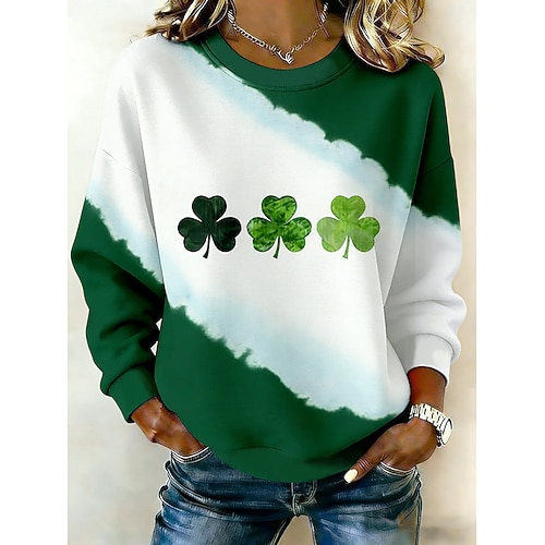 Felpa da donna per il giorno di San Patrizio grafica trifoglio casual manica lunga colletto rotondo top regolari casual strada abbigliamento quotidiano bianca verde estate primavera