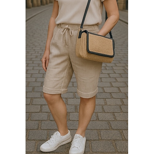 Per donna Pantaloni in cotone e lino Chinos Semi-lungo Moda Streetwear Comfort Lunghezza al ginocchio Vita Alta Semplice Tasca Fascia Elastica Comodo All'aperto Confortevole Streetwear Abbigliamento