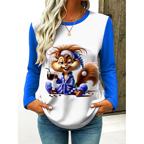 Natale Per donna Maglietta Grafico Animale Gatto Vintage Moda Elegante Manica Lunga Girocollo Top Regolari Quotidiano Weekend Stampato Blu Nero Bianco Giallo Rosa Autunno Inverno