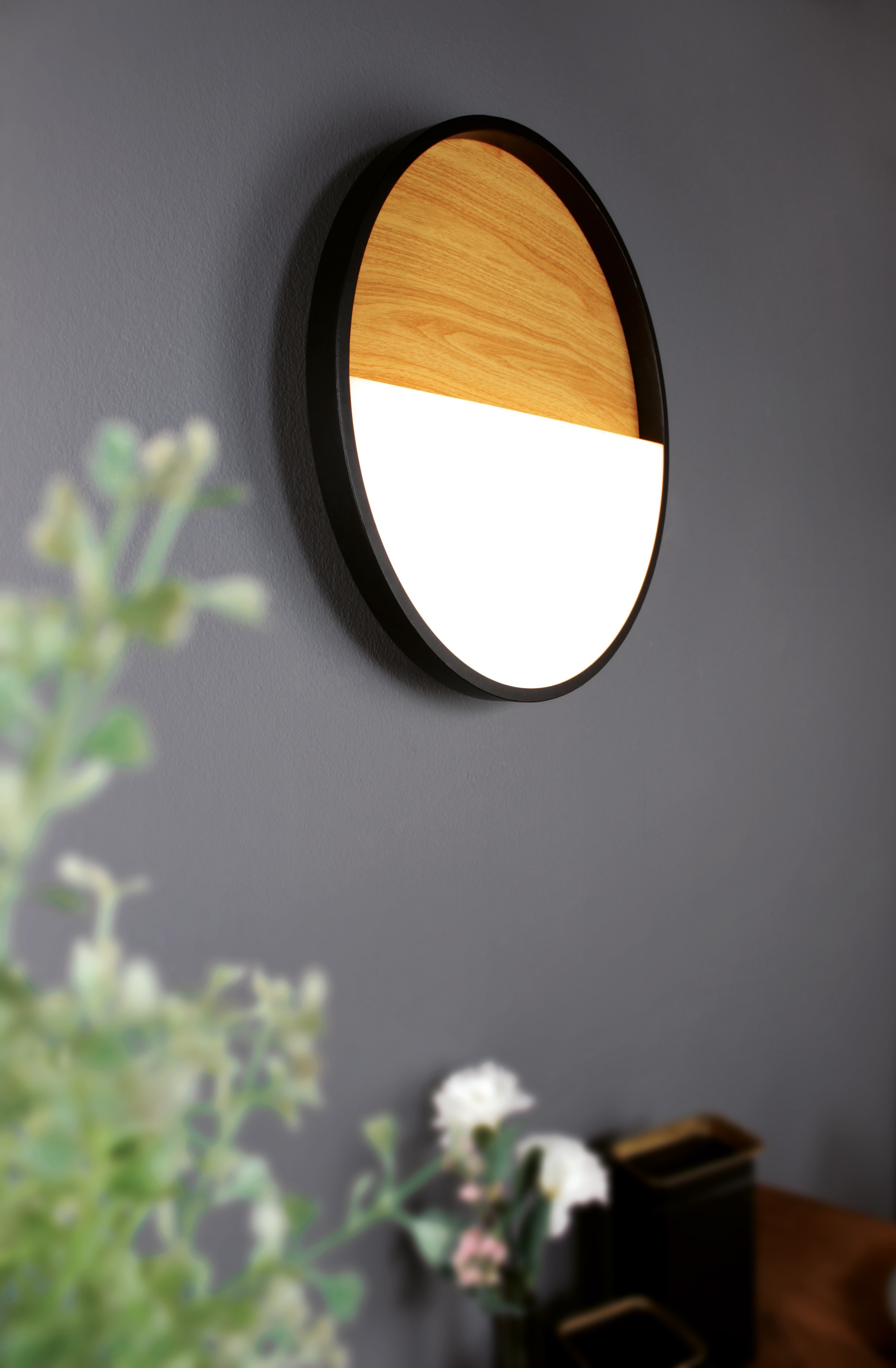 ECO-LIGHT LED Deckenleuchte "LED-Deckenleuchte VISTA, D30cm", schwarz (holz, schwarzem rand), Ø 30,00cm H: 5,50cm, Lampen, LED Wandleuchte