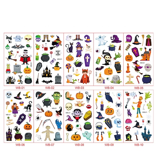 Adesivi per tatuaggi di Halloween per bambini a forma di cartone animato – 10 tatuaggi temporanei impermeabili a forma di zucca per regali di festa decorazioni