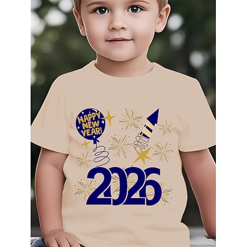 Maglietta grafica per la festa di Capodanno 2026 in 3D per ragazzi, manica corta, stampa 3D, estate, primavera, sport, moda, streetwear, bambini 4-12 anni, girocollo, casual, per attività all'aperto,
