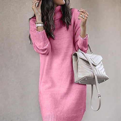 Per donna Mini Abito Abito in maglia Tubino Moda Moderno Quotidiano Vacanza Uscire Vestibilità regolare Semplice Manica Lunga Dolcevita Bianco Giallo Rosa Cachi Autunno Inverno