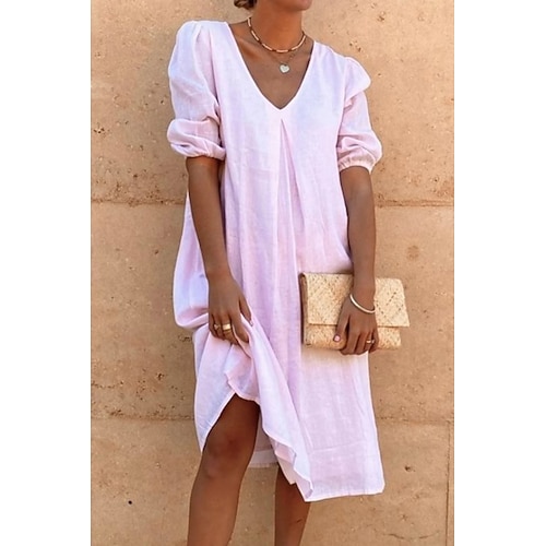 Per donna Abito Midi Misto cotone Essenziale Classico Vacanza Uscire Weekend Vestibilità regolare Semplice Manica Corta Scollo a V Nero Giallo Rosa Azzurro Estate
