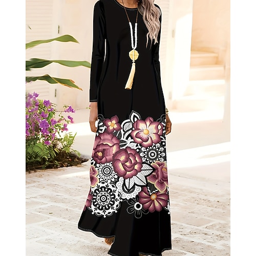 Per donna Abito maxi Abito a trapezio Abito aderente e svasato Festa Casual Boho Feste Ospite di nozze Quotidiano Vestibilità comoda Floreale Grafico Manica Lunga Girocollo Rosa Rosso Verde Primavera