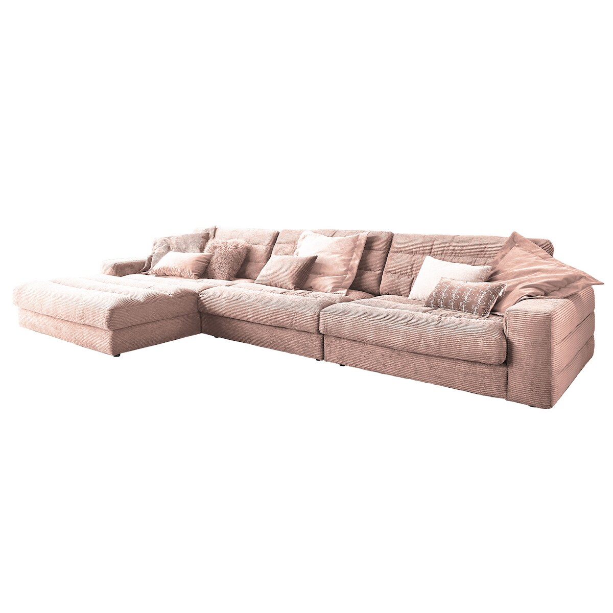 KAWOLA Sofa LANA XL Ecksofa Cord rosa Recamiere links